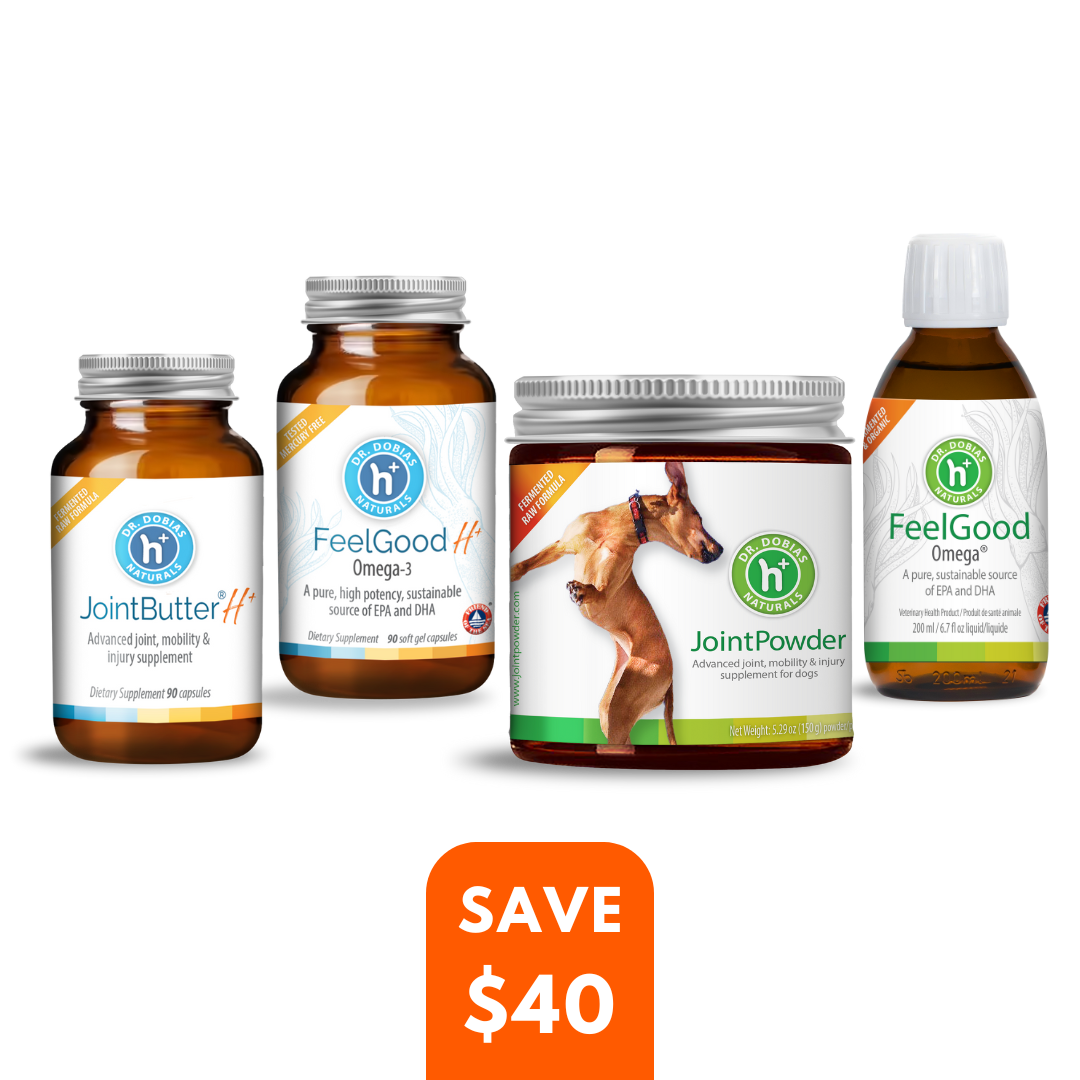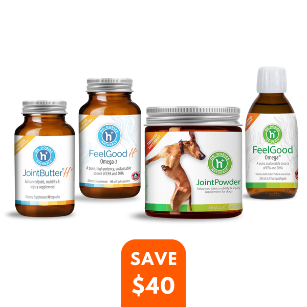 This bundle contains the following: FeelGood Omega, FeelGood Omega H+, JointPowder and JointButter H+.